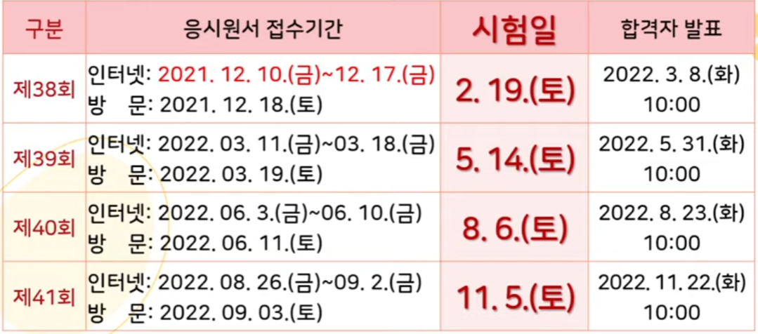 응시원서 접수 인터넷 2021. 12. 10(금) ~12.17(금)