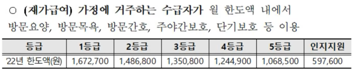 2022 노인장기요양보험 및 노인장기요양급여 요약. 가족요양 지원금 (월 167만원)