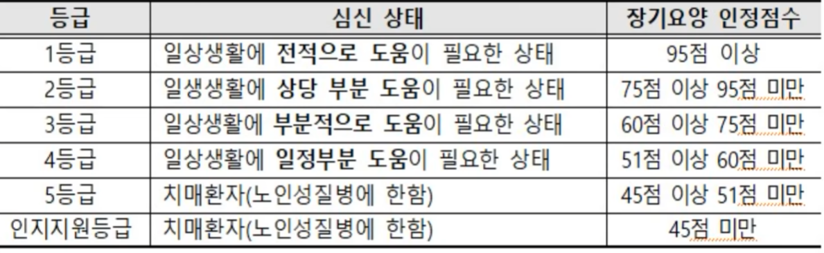 - 5등급 : 치매환자(노인성 질병에 한함)